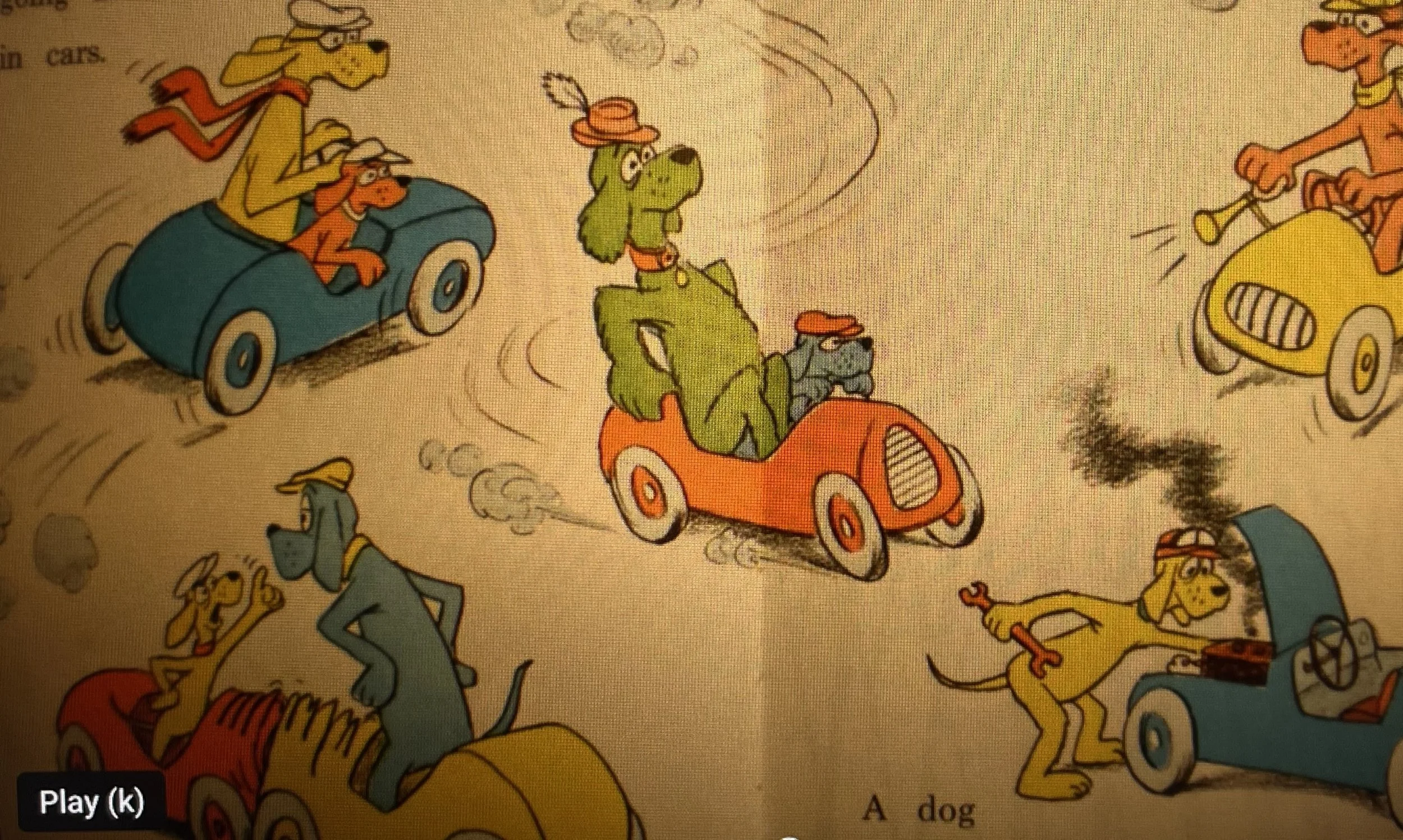 Notice the blue cars? Or does the red or yellow capture your attention? [From the classic- Go, Dog, Go by P.D. Eastman]